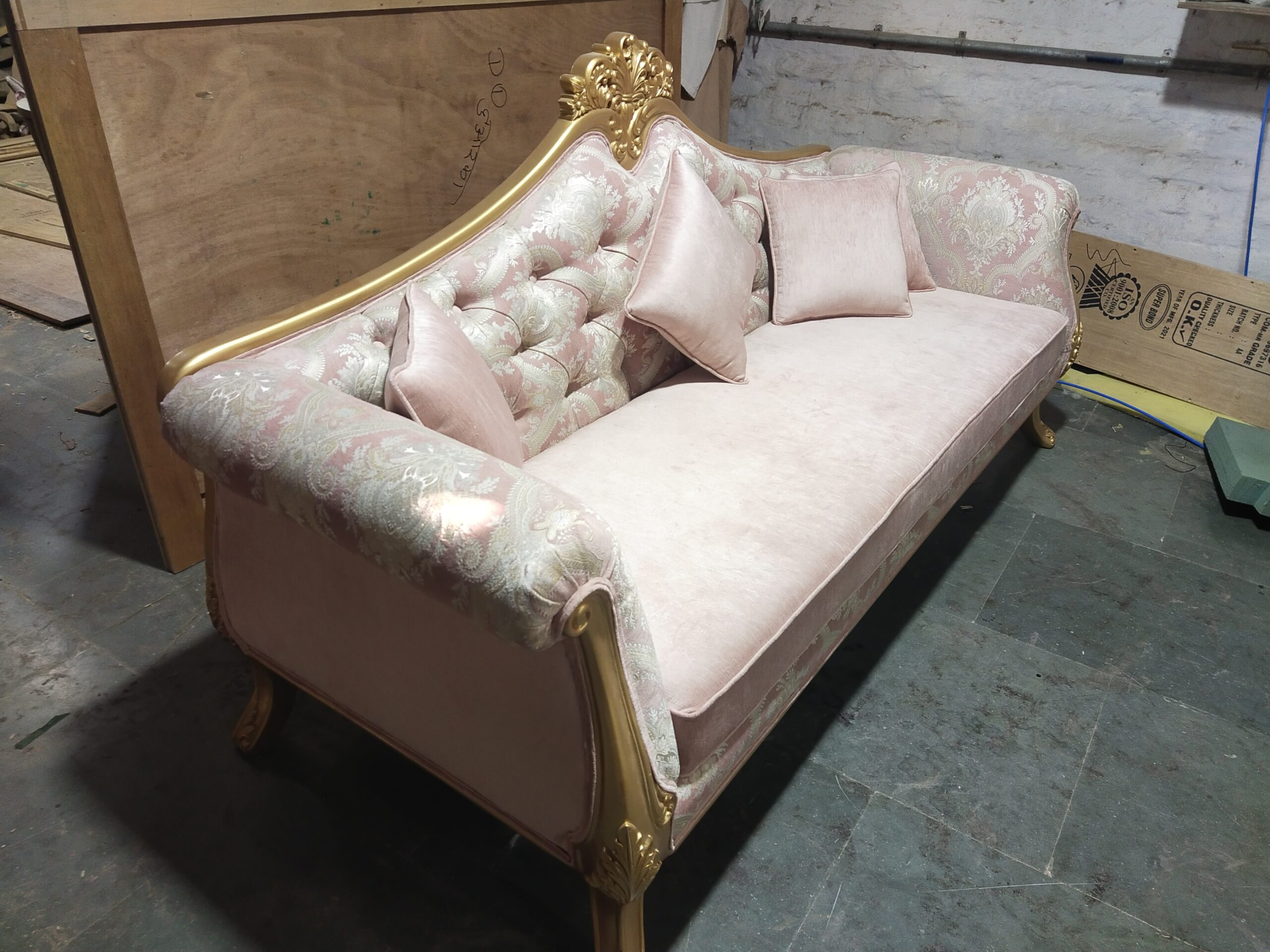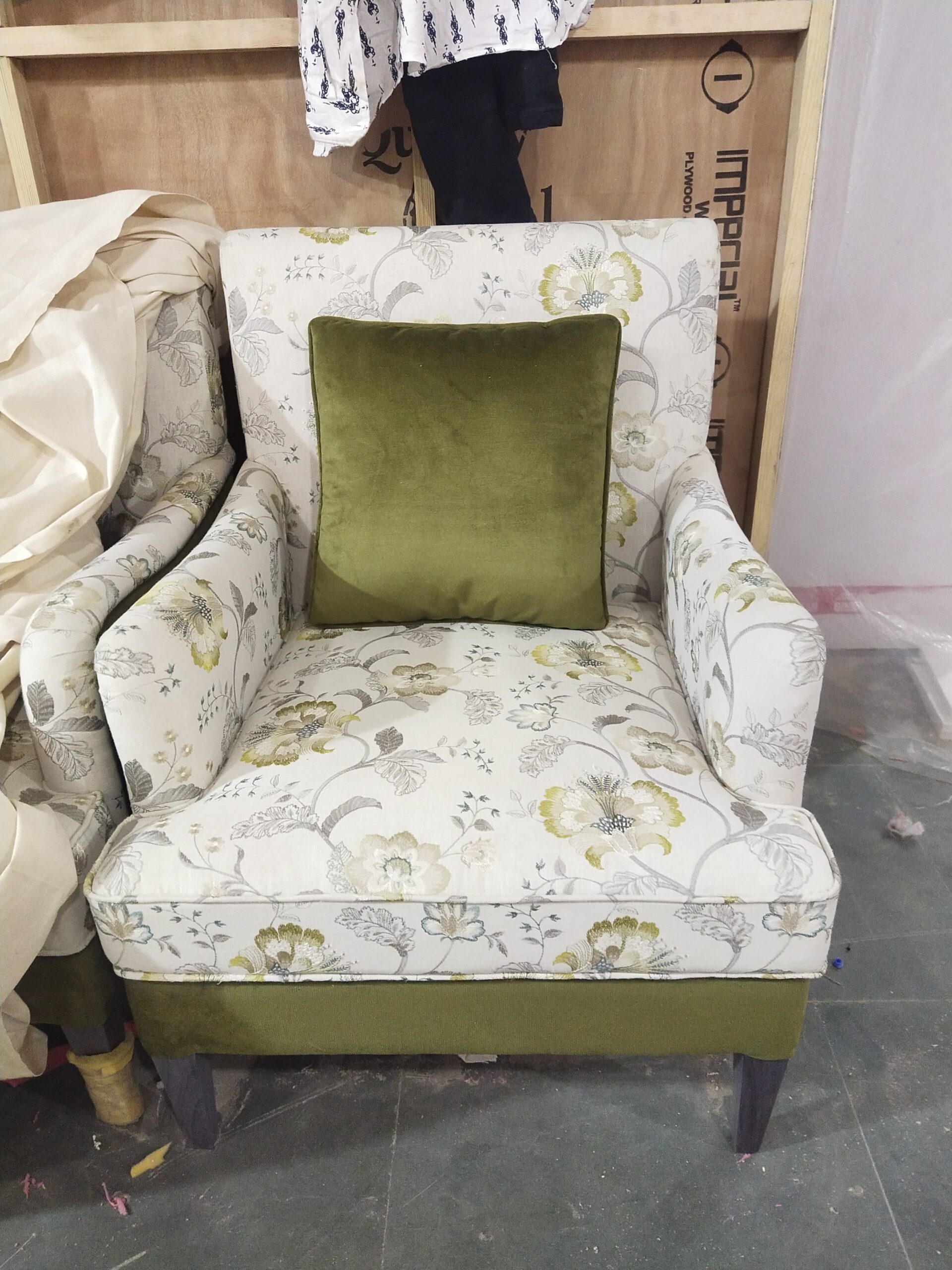 Custom sofa and chair cushion made with high-quality foam and durable fabric.